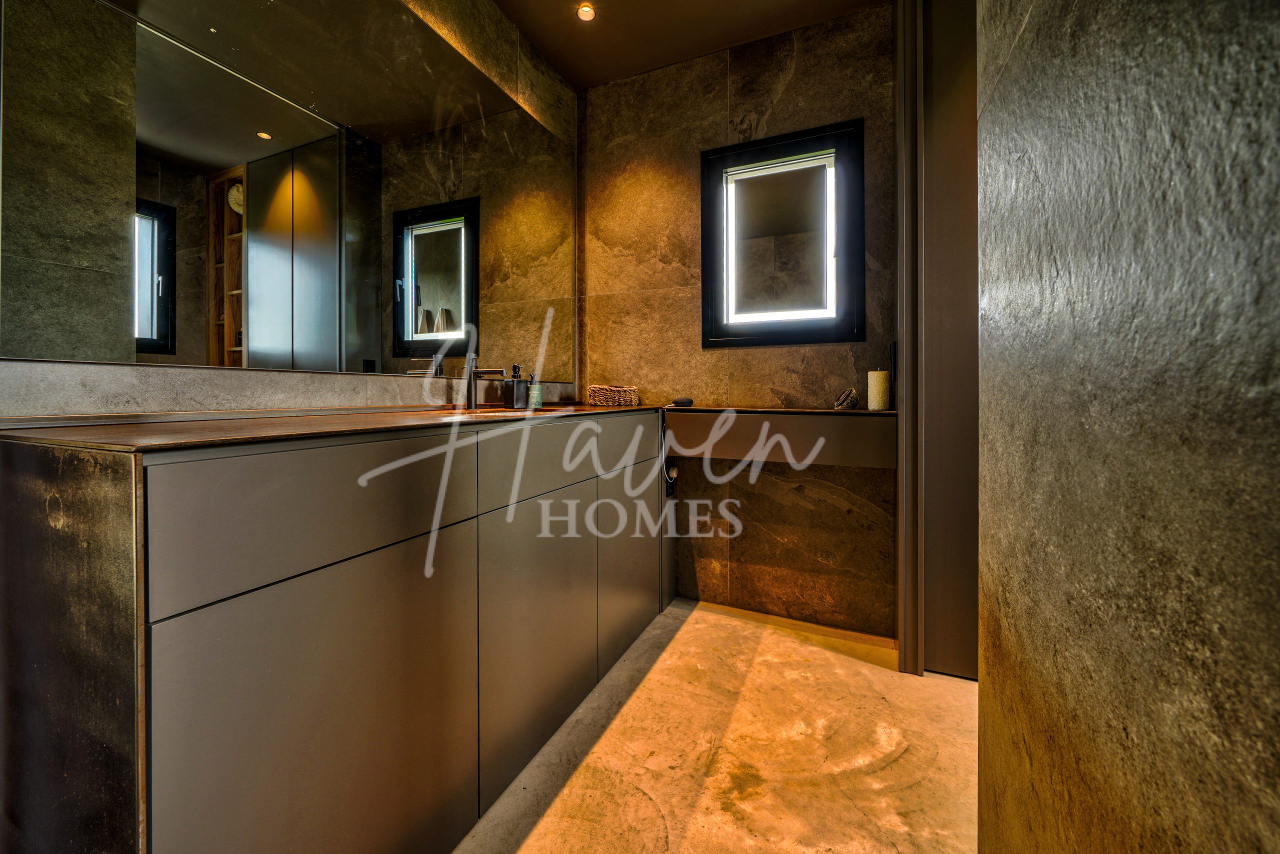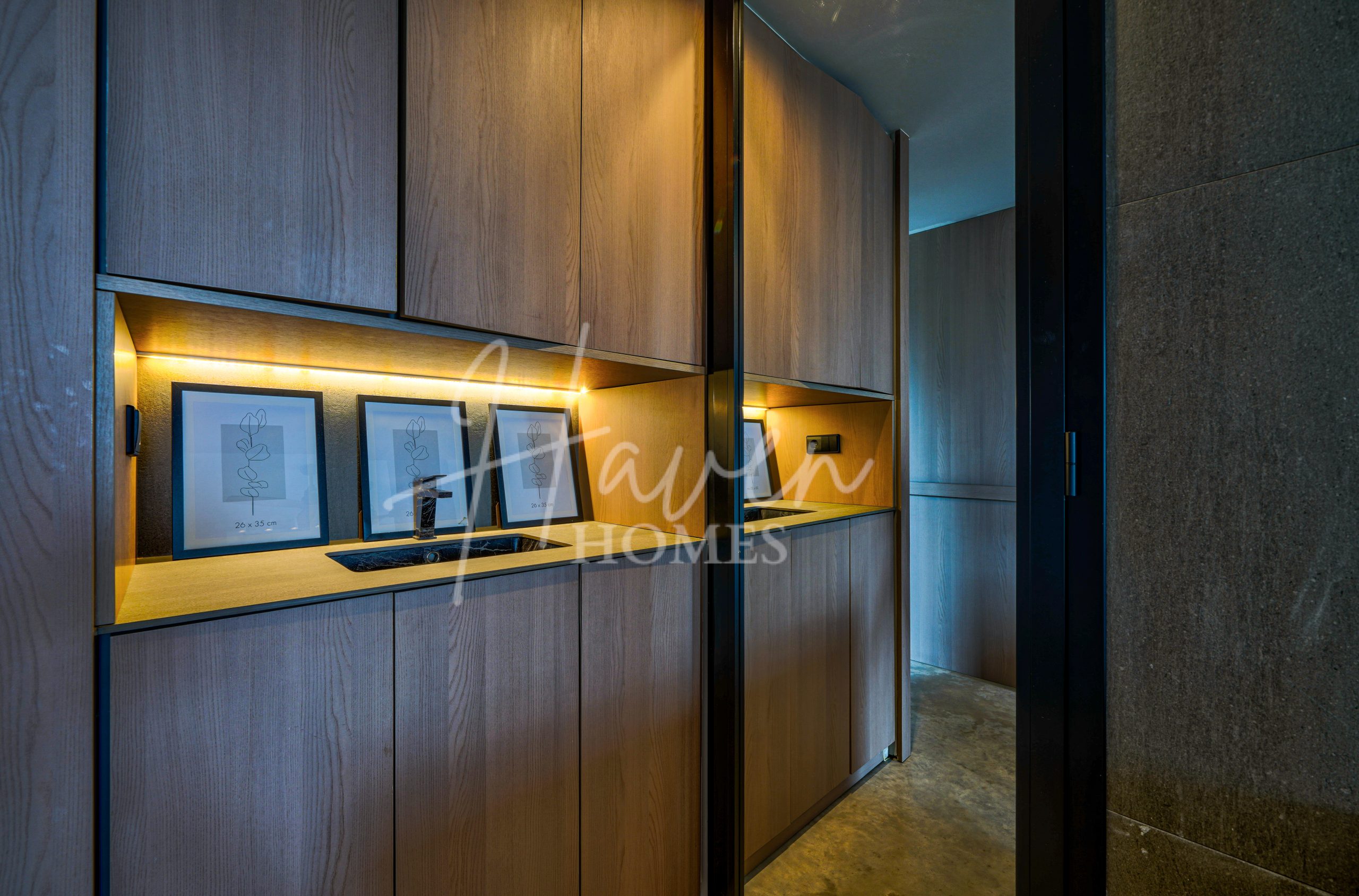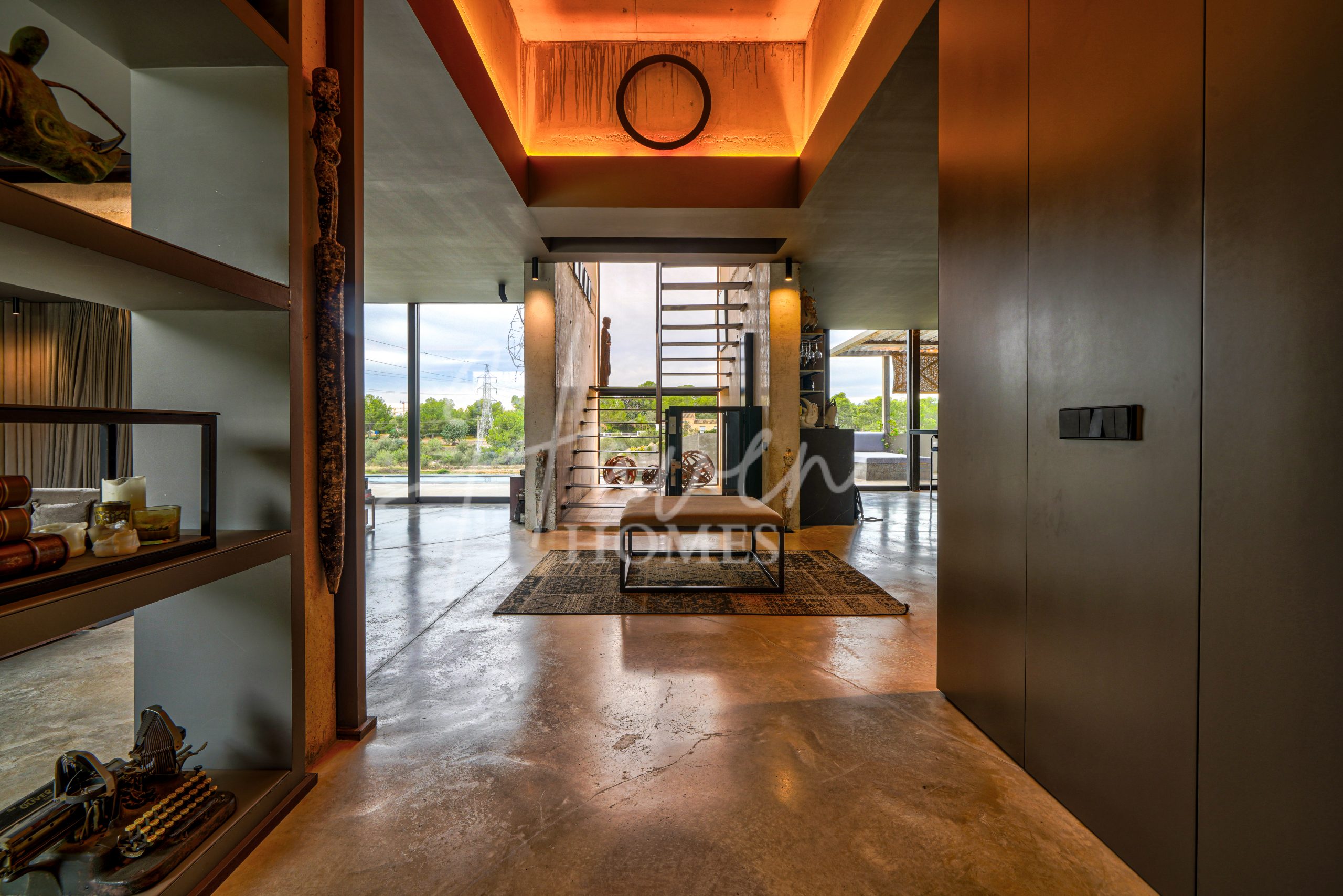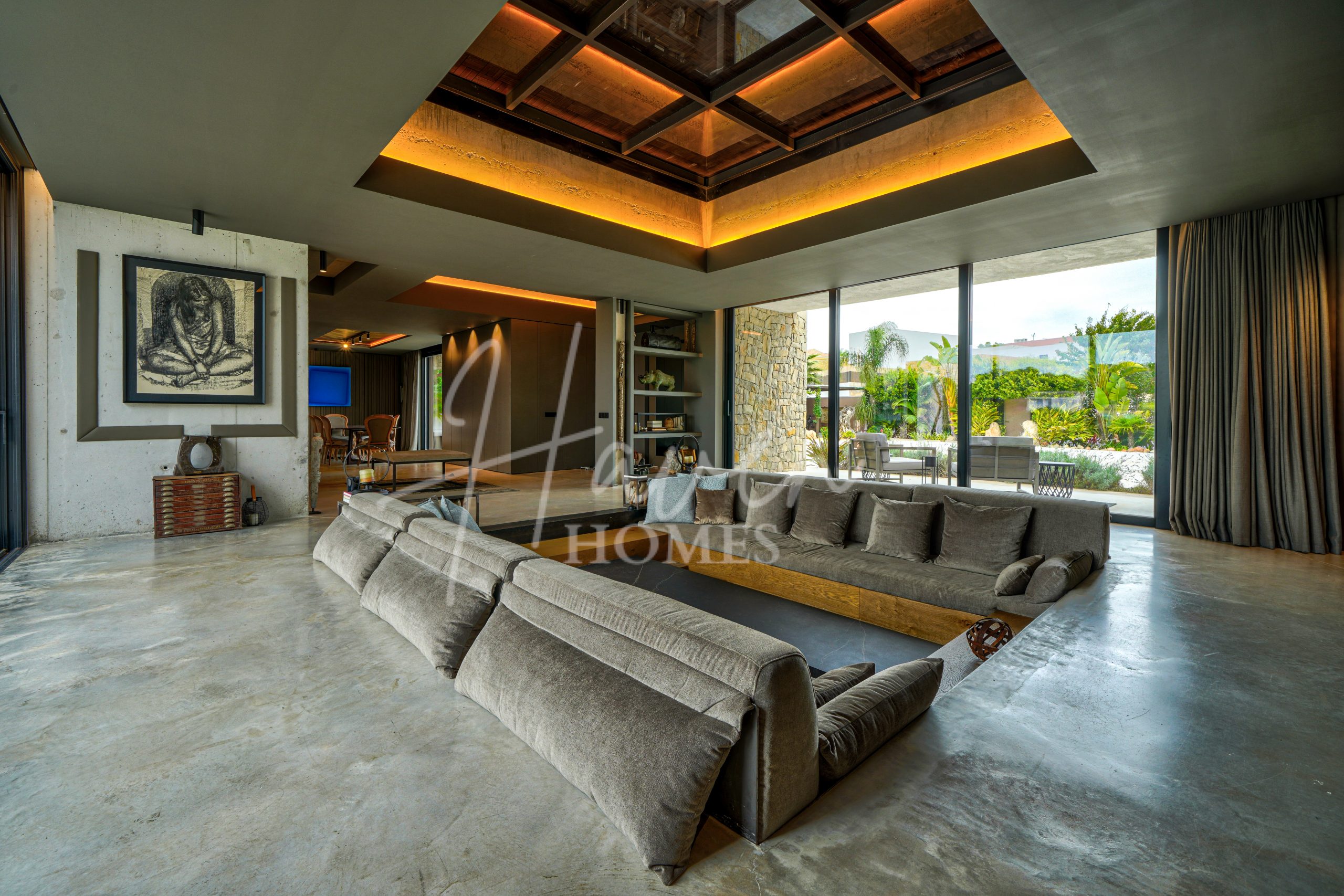Su gran puerta pivotante de 6 metros de altura, nos conduce a la planta principal de la propiedad, que impacta nuevamente con su recibidor con techos de 5 metros de altura, su gran luminosidad, increíbles vistas y un diseño interior que es todo un arte creativo, donde exterior e interior se funden en un mismo ambiente.